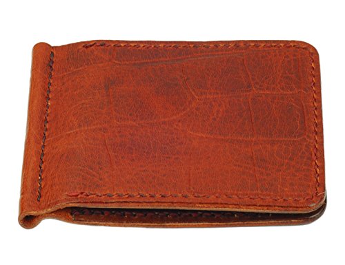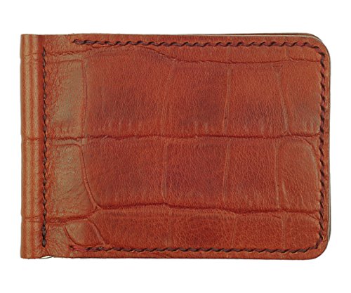- Title : Leather Money Clip Wallet, Crocodile Grain, Mahogany / Cognac, Handmade
