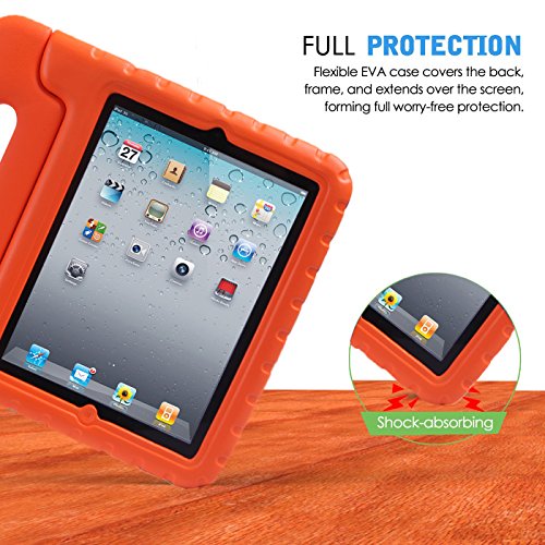 HDE Shock Proof iPad Case for Kids Bumper Cover Handle Stand for Apple iPad 2 iPad 3 iPad 4 (Orange)