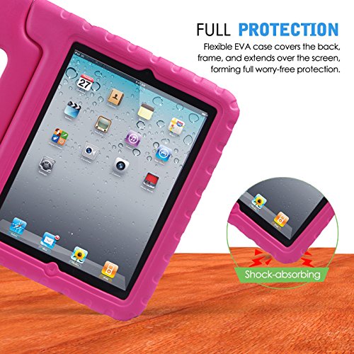 HDE Shock Proof iPad Case for Kids Bumper Cover Handle Stand for Apple iPad 2 iPad 3 iPad 4 (Pink)