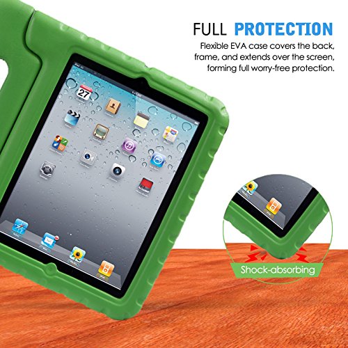 HDE Shock Proof iPad Case for Kids Bumper Cover Handle Stand for Apple iPad 2 iPad 3 iPad 4 (Green)