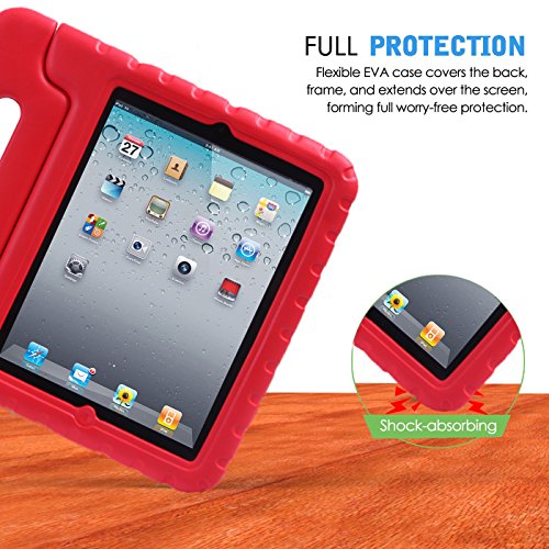 HDE Shock Proof iPad Case for Kids Bumper Cover Handle Stand for Apple iPad 2 iPad 3 iPad 4 (Red)