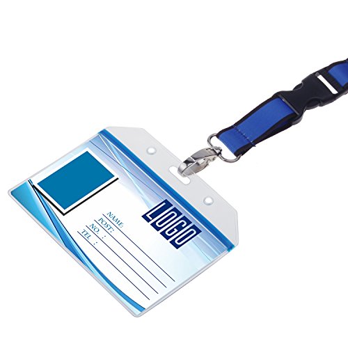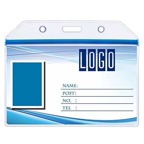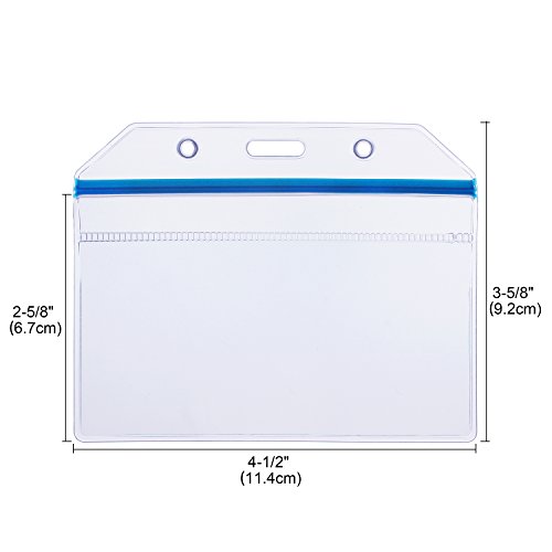 1 Pack Horizontal Heavy Duty Clear ID Badge Holder / Card Holder With Resealable Zip For Multiple Cards [Vinyl PVC] by Wisdompro - Blue Zip