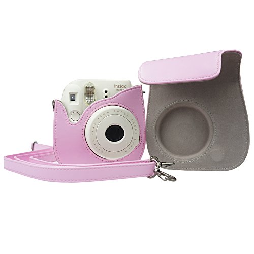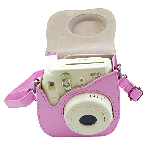 Alohallo Instax Mini 9/ 8/ 8+ Case PU Leather Carring Bag for Fujiflim Instax Mini 8/ Mini 8+/ Mini 9 Instant Film Camera with Shoulder Strap and Pocket (Pink)