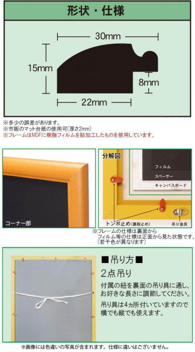 素材・材質フレーム:MDF樹脂フィルム貼加工、裏板:キャンバスボード、表面フィルム:PET