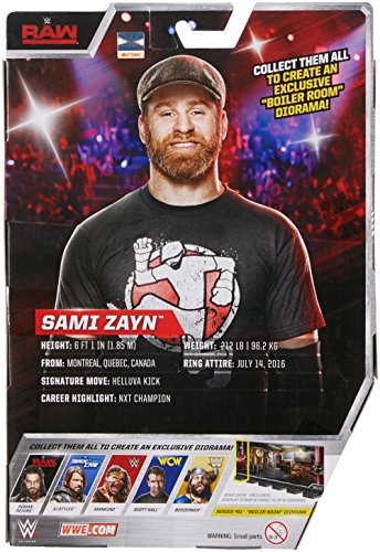 -. Binding : Toy -. Brand : WWE -. EAN : 0887961397437 -. Feature : Capture the blowout action of WWE Superstars with this Elite collection figure! / Featuring one of the WWE biggest personalities and Champions, this bold and colorful figure comes ready to wreak havoc right out of the box! / Figure has deluxe articulation, a detailed character expression, authentic ring attire and iconic accessories / Get all the WWE Elite collection figures and let the battles begin! / Great gift for any WWE fan -. IsAdultProduct : 0 -. Label : Mattel -. Manufacturer : Mattel -. Model : DXJ30 -. MPN : DXJ30 -. NumberOfItems : 1 -. PackageQuantity : 1 -. PartNumber : DXJ30 -. ProductGroup : Toy -. ProductTypeName : TOYS_AND_GAMES -. Publisher : Mattel -. ReleaseDate : 2017-07-01 -. Studio : Mattel -. Title : WWE Elite Collection Sami Zayn Action Figure -. UPC : 887961397437 -. Warranty : 1 year warranty against manufacturer defects