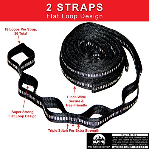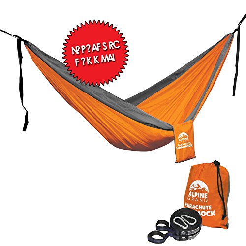 Alpine Grand Premium Lightweight Portable Parachute Hammock – TWO FREE HANGING STRAPS WITH FLAT LOOP DESIGN - GREAT FOR Camping, Backpacking, Hiking, Yard, Beach, Boat Dock, Park