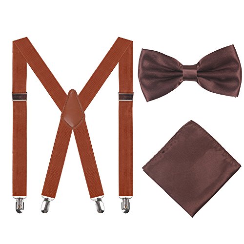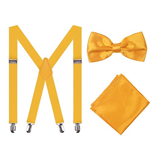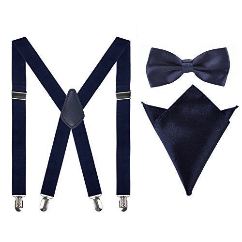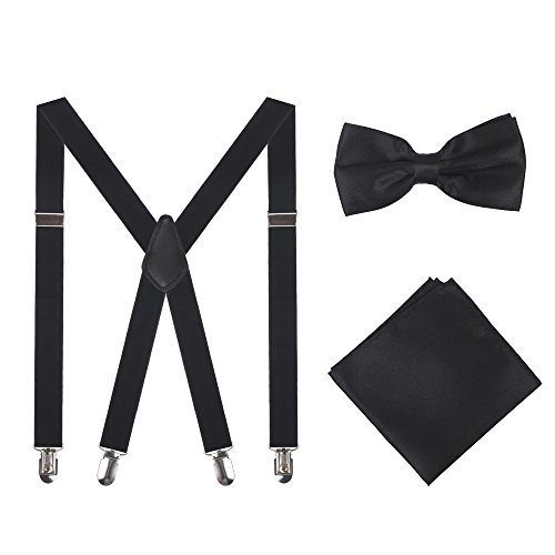 Men Suspenders,25mm X Back Elastic Unisex Suspenders with Bow TiePocket Square