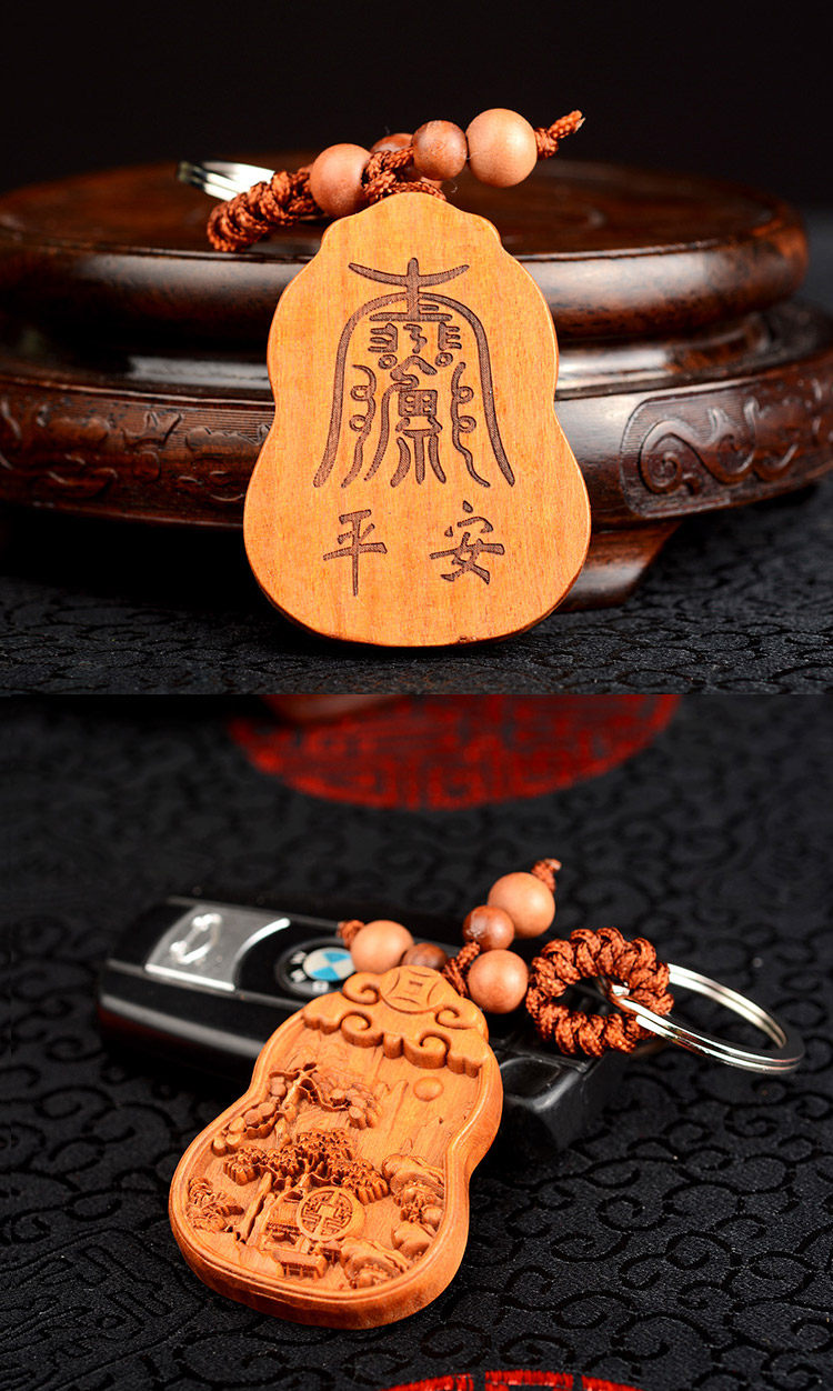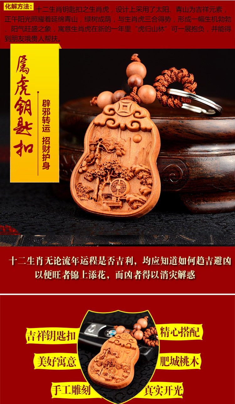 生肖属虎吉祥物桃木钥匙扣挂件汽车钥匙扣木雕挂件