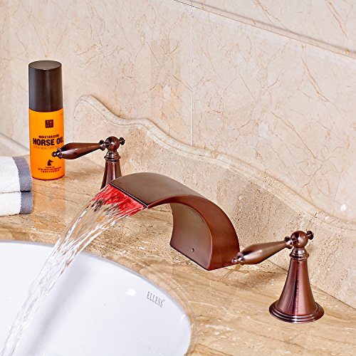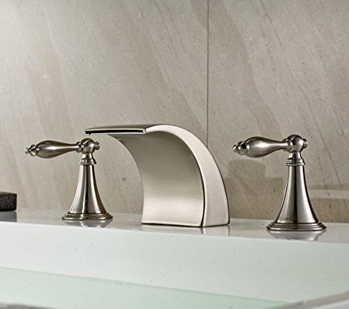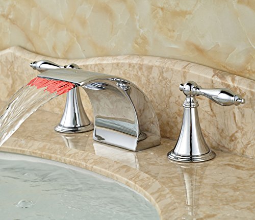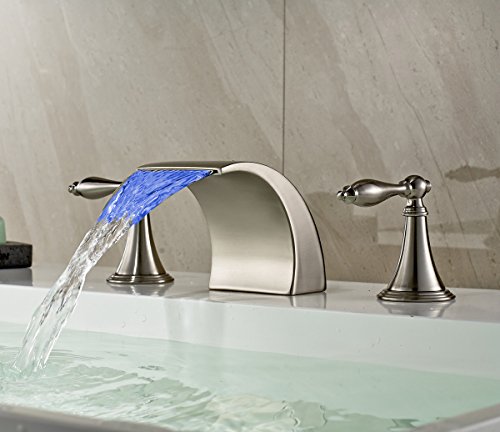 -. Brand : Rozin -. Feature : Factory Direct sales,Delivery within 7-10 days / Widespread 3 Holes / Cold and hot water / Complete with mounting accessories / Fit for 8-inch Widespread Hole at least -. ProductGroup : Home Improvement -. ProductTypeName : PLUMBING_FIXTURE -. Title : Rozin Brushed Nickel Finish LED Colors Waterfall Bathroom Sink Faucet Deck Mounted Basin Mixer Tap