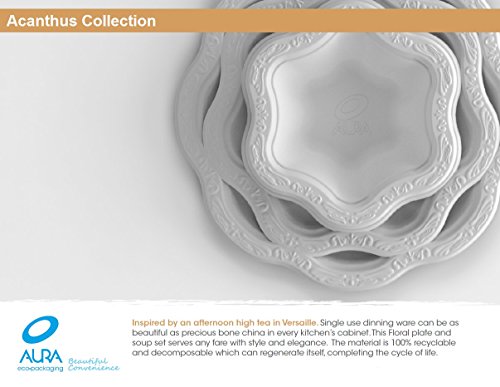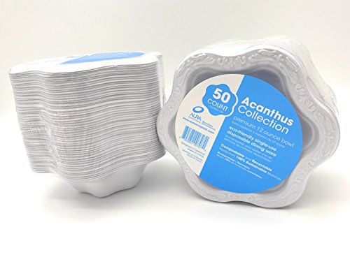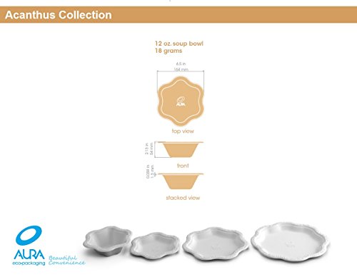 [50 COUNT] 12 oz Disposable Floral Premium White Bowls - Acanthus Collection Natural Sugarcane Bamboo Fibers Bagasse 100% Byproduct Eco Friendly Environmental Plastic Paper Bowl Elegant Alternative