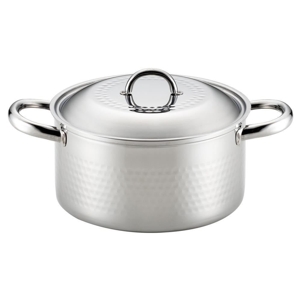 fk094igrjs高級感あふれる槌目模様が施してあります サイズ A:297m/m、 B:205m/m、 C:105m/m、 D:144m/m 個装サイズ:21×26.5×11.2cm 重量 1060g 個装重量:1110g 素材・材質 本体/ステンレス(1.2m/m) フタ/ステンレス ハンドル・ツマミ/ステンレス 仕様 食器洗浄機:不可 対応熱源:ガス火、IH(200V) 容量:3.2L 付属品 取扱説明書 生産国 日本 丈夫なオール・ステンレス製の両手鍋です 高級感あふれる槌目模様が施してあります