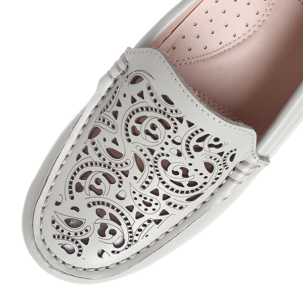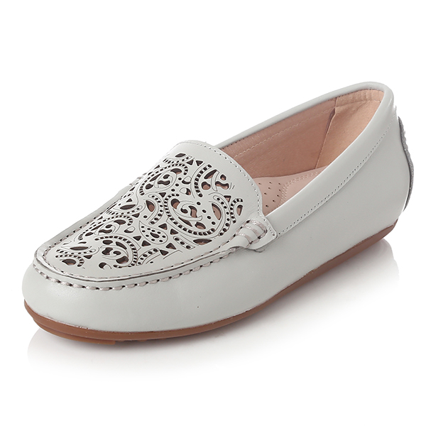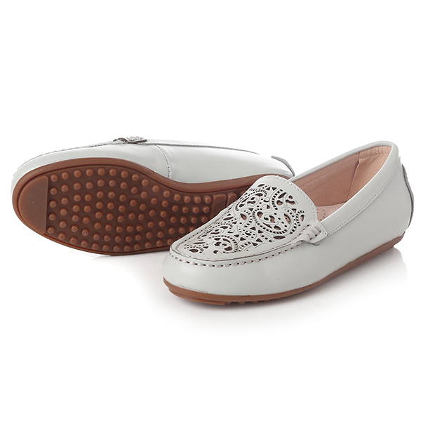 소프트한 러버솔과 입체쿠션 인솔을 사용한 드라이빙 슈즈, 천연가죽 내피를 사용하여 착화시 발을 부드럽게 감싸줌. 발등의 컷아웃 레이저 디테일이 포인트.