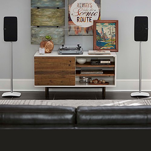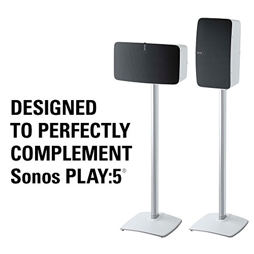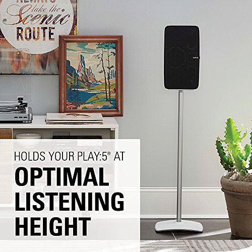 Studio : Sanus Publisher : Sanus Product Description Designed to hold the Sonos PLAY:5 in either vertical or horizontal orientation, the anodized steel design of the SANUS WSS51 places your speaker at optimal listening height while perfectly complementing the modern look of the Sonos PLAY:5. Available for purchase in black or white and as a single stand, the WSS51 fashionably delivers optimum performance, no matter your unique setup needs - Ambient listening, stereo pairing, or surround sound. For a seamless look free of pesky cables, our own Press Fit cable management technology secures cords down the back of the stand for complete concealment. Assembling easily and in only 15 minutes, you'll be enjoying perfect sound from this sleek stand in no time. ? 0