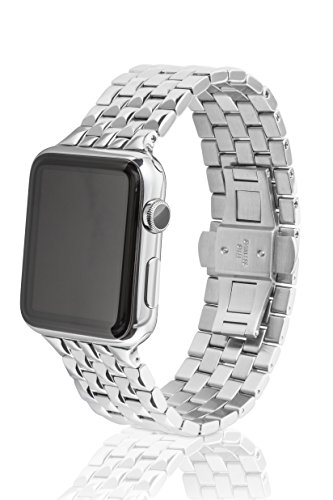 42mm JUUK Locarno Premium Apple Watch band, made with Swiss quality using only the highest grade solid 316L stainless steel with a solid steel butterfly deployant buckle (Polished)