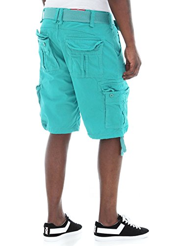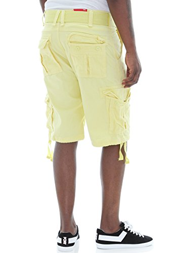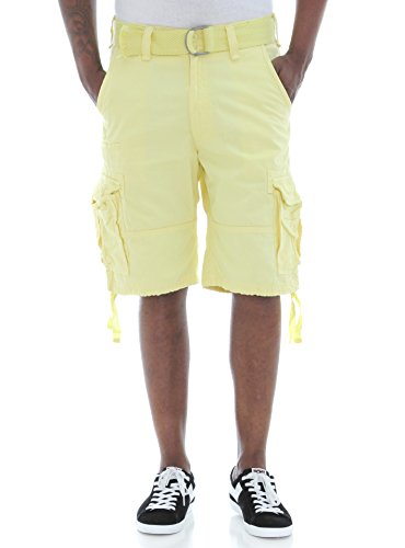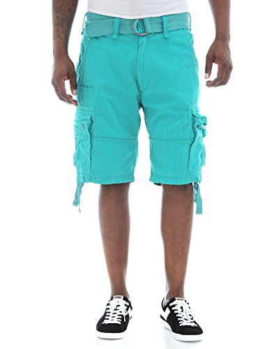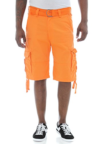 Product Description Jordan Craig men's flat front solid thick cotton twill cargo shorts with matching belt. Go in style in these short available in a range of vibrant colors. Model is 6"1 and 185 LBS and is wearing a Size 34. 0