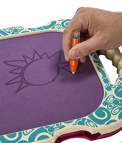 Your budding artist will have hours of fun drawing shapes, lines and doodles with the four refillable water pens. In just ten minutes, his or her masterpiece will disappear and she can start all over again. Water pens do not stain so no messes are made!