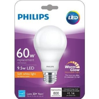 Philips 455840 60W Equivalent 2200K-2700K A19 Dimmable LED Warm Glow Light Effect Light Bulb, Soft White (6-Pack)