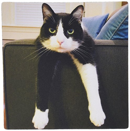 3dRose LLC 8 x 8 x 0.25 Inches Mouse Pad, Black and White Cat with Nothing To Do (mp_23450_1)