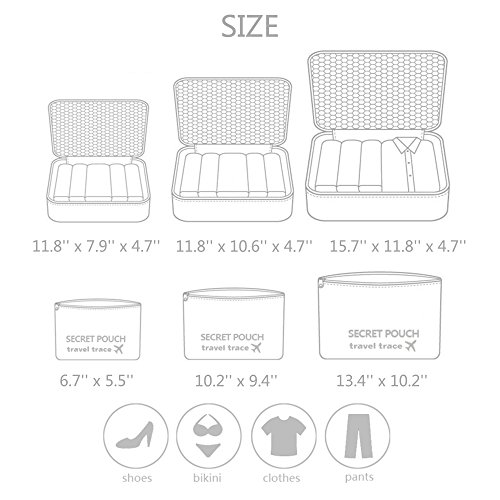 Super Capacity - 6 Set of mix size organizer allows you to bring many clothes or toiletries using up to 1 week, makes your trip easy and comfortable.