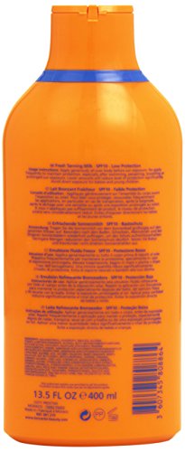 A high-performance. water-resistant tanning lotion. Developed with exclusive Infrared Technology to protect skin from infrared rays. Formulated with advanced Tan Activator Complex (TAC). Helps create an even. radiant and long-lasting golden tan. Dermatologically-tested. To use: Apply generously all over body before sun exposure. Re-apply regularly to maintain protection.Feature