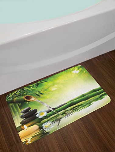 Spa Bath Mat by Ambesonne, Meditation and Zen Picture of Bamboo Stalks Candle and Basalt Stones Theraphy Relaxing, Plush Bathroom Decor Mat with Non Slip Backing, 29.5 W X 17.5 W Inches, Multicolor