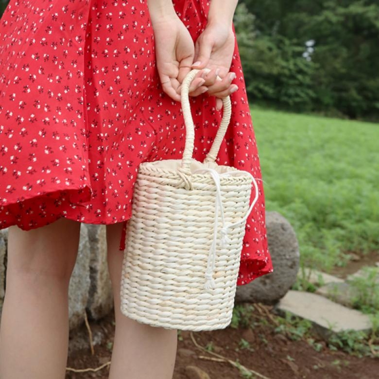 페이퍼 소재의 볼드한 두께감의 실로 촘촘하게 짜여있으며 라이트한 컬러감으로 시원해 보여 이번 시즌 룩과 잘 매치됩니다. 스트링을 조여 클로징 되며 가방 컬러와 통일된 안감으로 깔끔합니다.