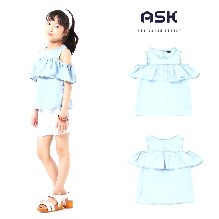 가슴과 어깨 부분의 프릴이 돋보이는 아이템.