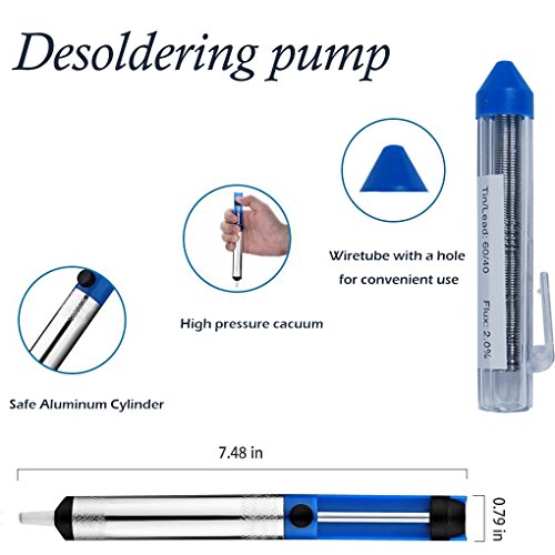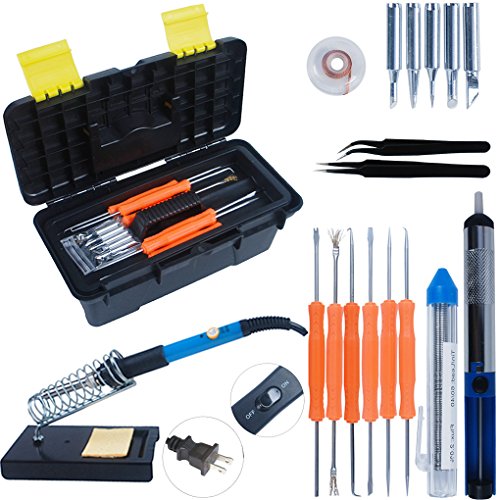 - Carry Portable: Soldering iron kit comes with soldering iron,desoldering pump, 5 pieces soldering tips, tin wire tube,solder sucker, soldering iron stand, tweezers, wire stripper cutter,Cleaning Sponge, 2 electronic wire (1mm in diameter, melting point: 183℃)in the Tool Carry Case.