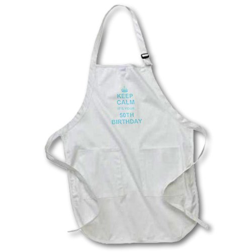 3dRose apr_157668_2 Keep Calm its Your 50Th Birthday-Blue-Stay Calm Turning 50 Fifty-Medium Length Apron with Pouch Pockets, 22 by 24-Inch