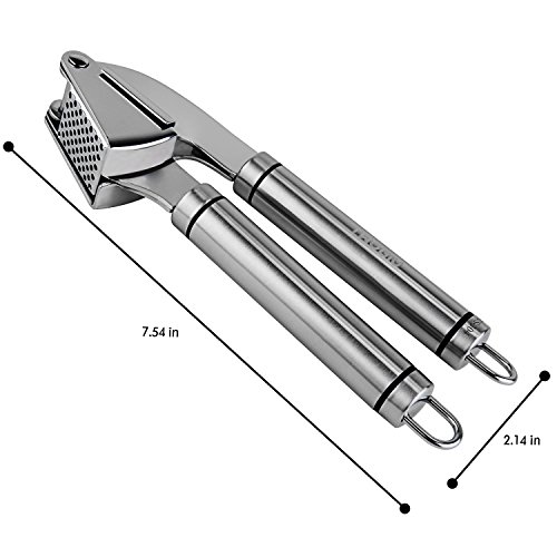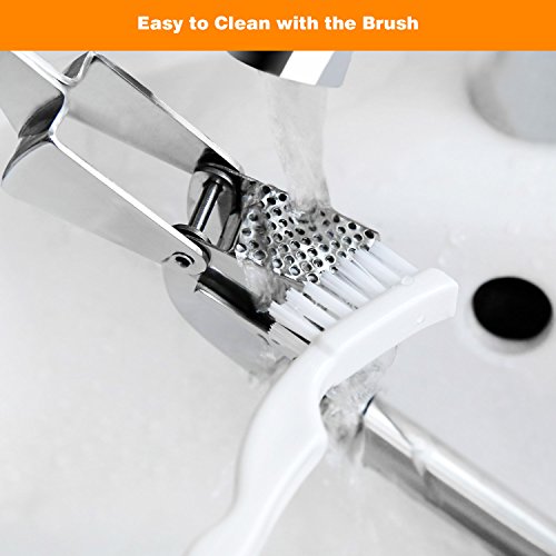 PRESS UNPEELED GARLIC AND GINGER: With the heavy duty construction and ergonomic design, crushing unpeeled garlic cloves and root ginger could be easy and fun. What's more, garlic comes out, peel stays in - Cooking has never been this easy!