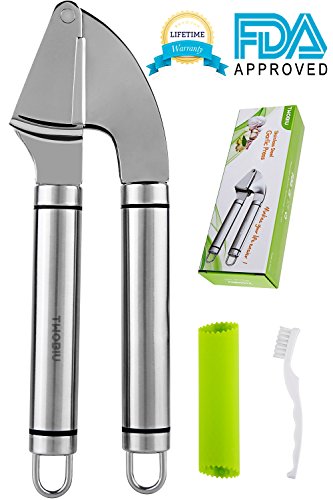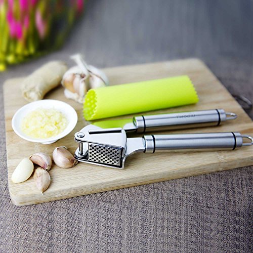 Stainless Steel Garlic Press Ginger Press TWOBIU Garlic Press and Peeler Set Steel Garlic Press with silicone Tube Garlic Peeler