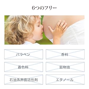 デリケートなお肌や赤ちゃんにもお使いいただけるよう、6つのフリーでやさしさにこだわりました。
