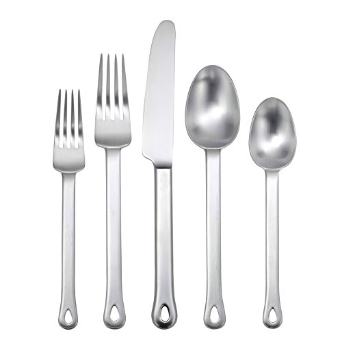 20-piece flatware set with service for 4. Set includes 4 each: salad fork, dinner fork, dinner knife, dinner spoon and teaspoon