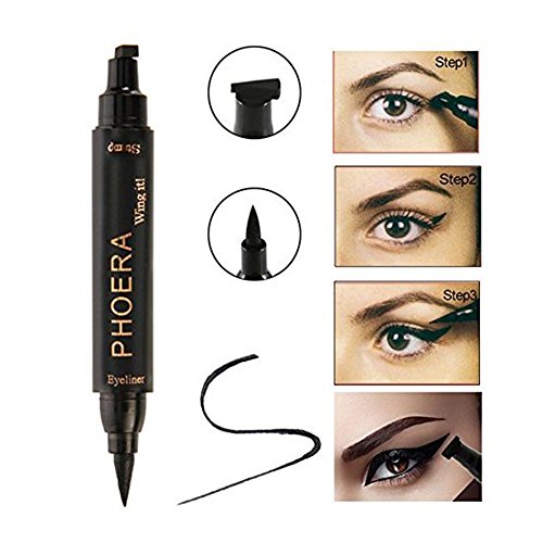 Buy one get one free! - Pheora Liquid Eyeliner Pen with Eye Corner Wing Stamp for Perfect Winged Eyes (Black)