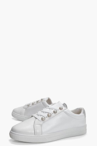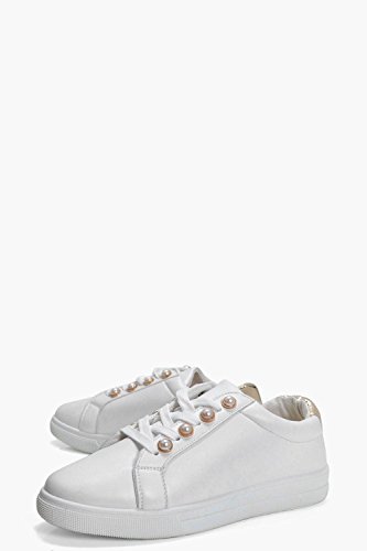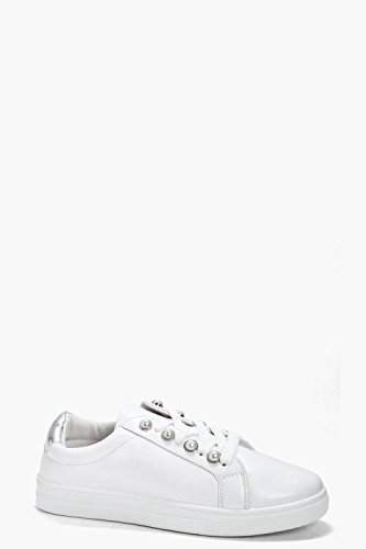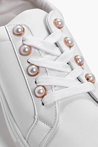 (Boohoo)/Women's/Athletic Outdoor/DIRECT FROM USA/Boohoo Womens Melody Pearl Trim Lace Up Trainer