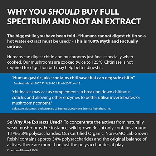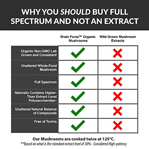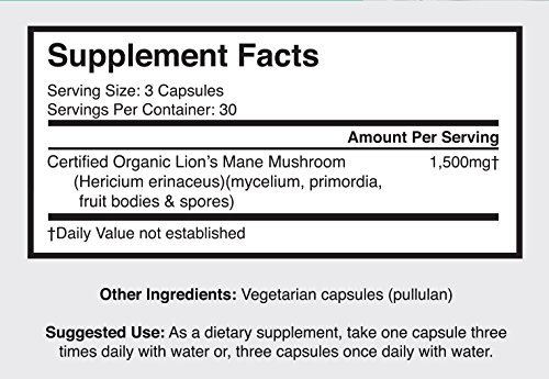 Overview: What is lion's mane mushroom?? One of the staples of traditional Chinese medicine, hericium erinaceous or lion's mane mushrooms are increasingly studied for their neuroprotective effects. Hericium erinaceous, also referred to as bearded tooth mushroom, hedgehog mushroom, bearded hedgehog mushroom, pom pom mushroom, or bearded tooth fungus. Lion's mane mushrooms have been traditionally used in japan and China for hundreds of years. Lion's mane mushrooms are edible mushroom you may find in Chinese vegetarian cuisine, used to replace pork or lamb. Lion's mane is in the the tooth fungus group and doesn't look like your usual cap and stem mushroom. Instead, it features flowing, thick stringy barbs, almost making it look like the back of a white hedgehog. While not the most visually appealing appetite wise, this mushroom has some pretty promising research behind it and was once reserved only for the palates of the royal families. Our hericium erinaceous is the purest and most potent in the world. We use only certified organic growth medium in a state of the art 21st century proprietary solid state fermentation process. No heavy metals, pesticides, herbicides or other contamination, as can be found in wild or farm grown hericium, 100% made in America. Our organic lion's mane mushroom contains just over 1,000mg of organic polysaccharides. Compare that to most extract products which feature only around 200mg. Our organic lion's mane mushroom is the best hericium available today and is always in limited stock due to quality vs batch size restrictions, so buy while you can our mushrooms are cooked to 125°c. Raw mushroom grown to naturally contain about 69% total polysaccharides by weight.Feature