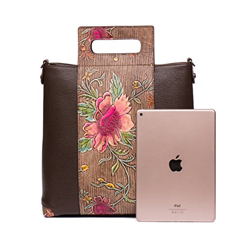 -. Title : Malirona Floral Vintage Genuine Leather Top Handle Satchel Women Handbag Tote Purse for Ladies