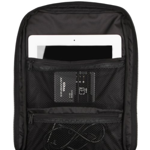 Triple layered mesh backing with mesh lined straps provide a comfortable moisture and sweat-free traveling experience