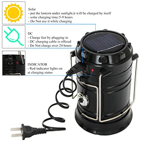 ● 2 Charging Ways: Solar, DC (ATTENTION: DO NOT USE THE LIGHT WHEN CHARGING)
