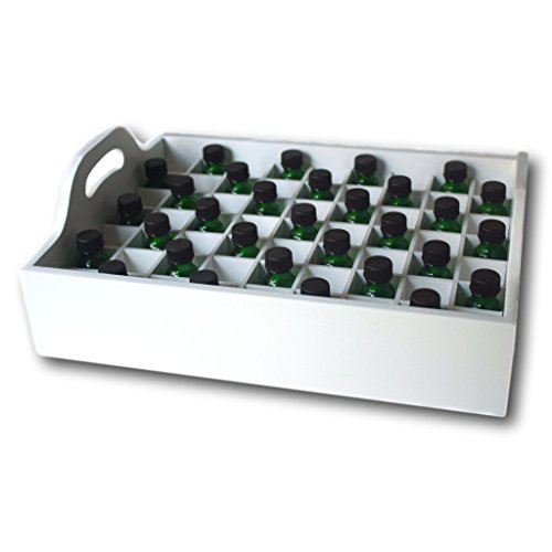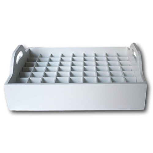 Essential Oil Storage Tray- Large Wooden Organizer Case Holds 63 Bottles of 5ml, 10ml and 15ml Essential Oils - Display doTERRA, Young Living, Plant Therapy (White)