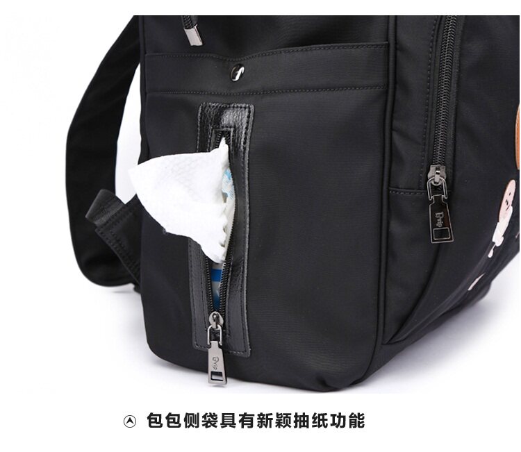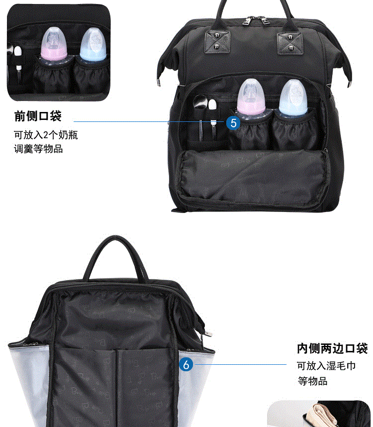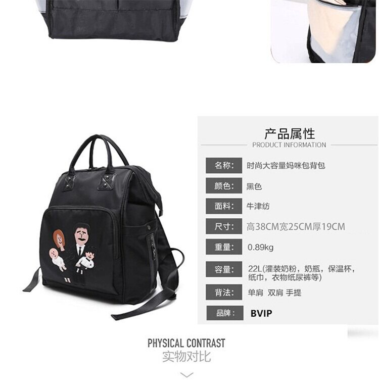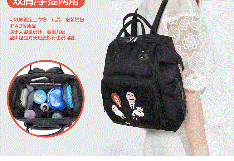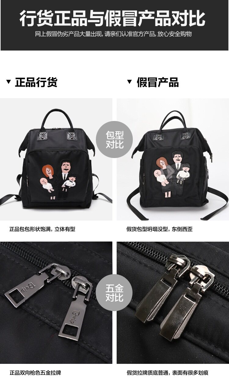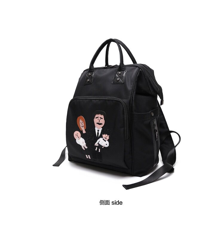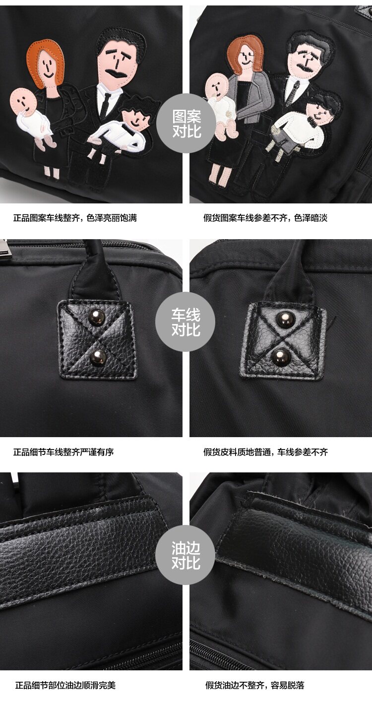 温馨一家四口刺绣 前面两个保温奶瓶位置 主口袋两边带有干湿分离 可双肩背 单肩背 手提