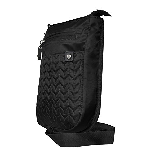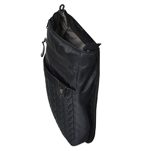 -. Feature : Lightweight, small crossbody with modern quilting and RFID protected front pocket. Features include anti-theft zipper locks and anti-slash mesh bottom / Main zipper compartment ensures the security / Two exterior zip pockets, an exterior slip pocket, zipper loop locks, key fob / Fabric Handbags / Handbags