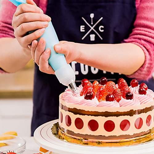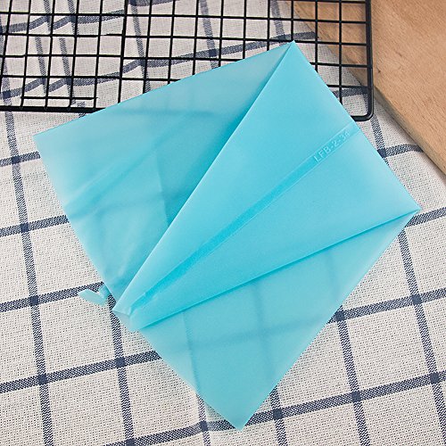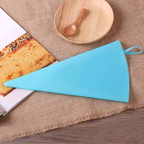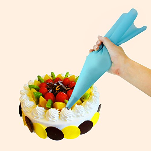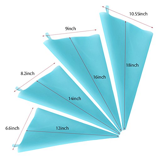 - COLOR AND SIZE : Four silicone piping bags are blue, bright colors, healthy, add fun to your kitchen. Pastry bags have 4 different sizes: the smallest (12 ") medium (14") large (16 ") increases (18"), 4 different sizes apply to different requirements.