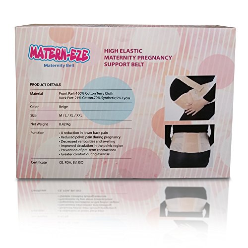 -. Brand : Matern-Eze -. Department : womens -. Feature : IMMEDIATE PAIN RELIEF - Gently lifts the abdominal area to relieve back, pubic, and pelvic pain especially while walking or standing by taking the pressure off your body. / MAXIMUM COMFORT AND SUPPORT - Relives joint fatigue and muscle soreness, while providing great ventilation With a !00% Cotton Terry Cloth front section for comfort, and a Cotton, Synthetic, Lycra back section. You'll notice the biggest difference while using it during the 2nd half of your pregnancy / VERSATILE - Our belt helps provide a reduction in lower back pain, reduces pelvi pain, decreases varicosities and swelling, inproves circulation in the pelvic region, helps prevent pre term contractions, and provides greater confort during exercise! / DR RECOMMENDED - Our belt was created by an MD and is promted for use by patients worldwide. It's well known that our belt provides great comfort especially during the 2nd half of your pregnancy, just read all the positive reviews! We promotes a 100% Satisfaction Guarantee! / 100% SATISFACTION GUARANTEED - We believe our product will make a big difference for you, but each pregnancy is different. So we offer a NO HASSLE return policy! Risk free, relieve your pain TODAY! -. IsAdultProduct : 0 -. Label : EZE Companies LLC -. LegalDisclaimer : Consult Your Physician Before Using This Item -. Manufacturer : EZE Companies LLC -. MPN : mez01PNT -. PackageQuantity : 1 -. PartNumber : mez01PNT -. ProductGroup : Health and Beauty -. ProductTypeName : PERSONAL_CARE_APPLIANCE -. Publisher : EZE Companies LLC -. Studio : EZE Companies LLC -. Title : Matern-Eze