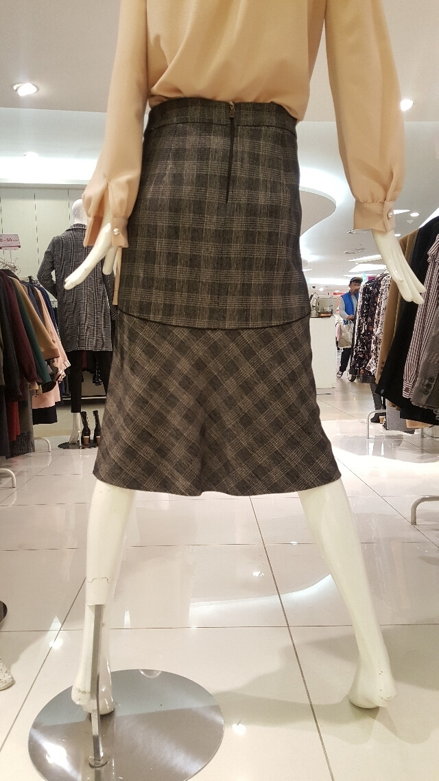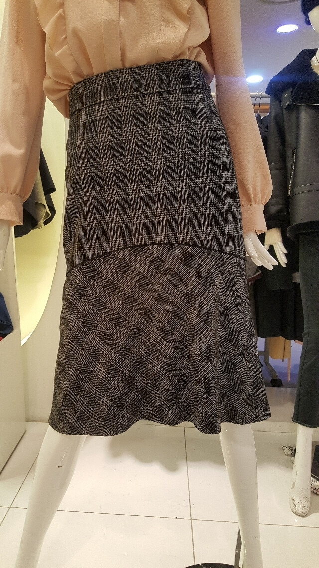 슬림하면서도 라인이 예쁜 하이웨스트스커트여요~ 부드럽게 표현된 체크패턴이 고급스럽고 세련되 보이지요^^~