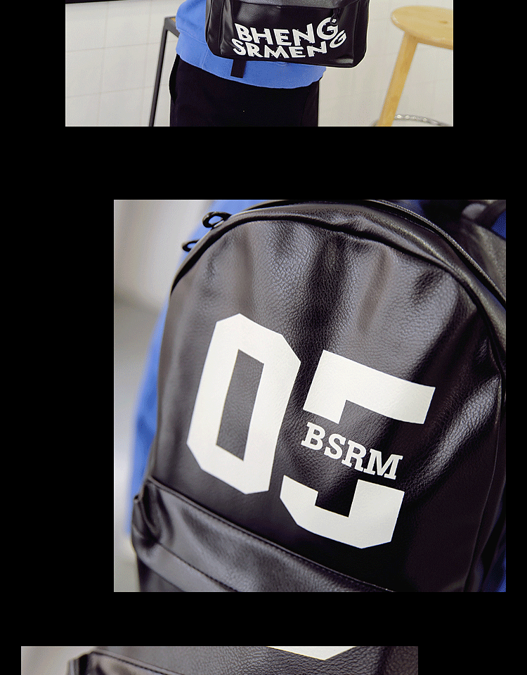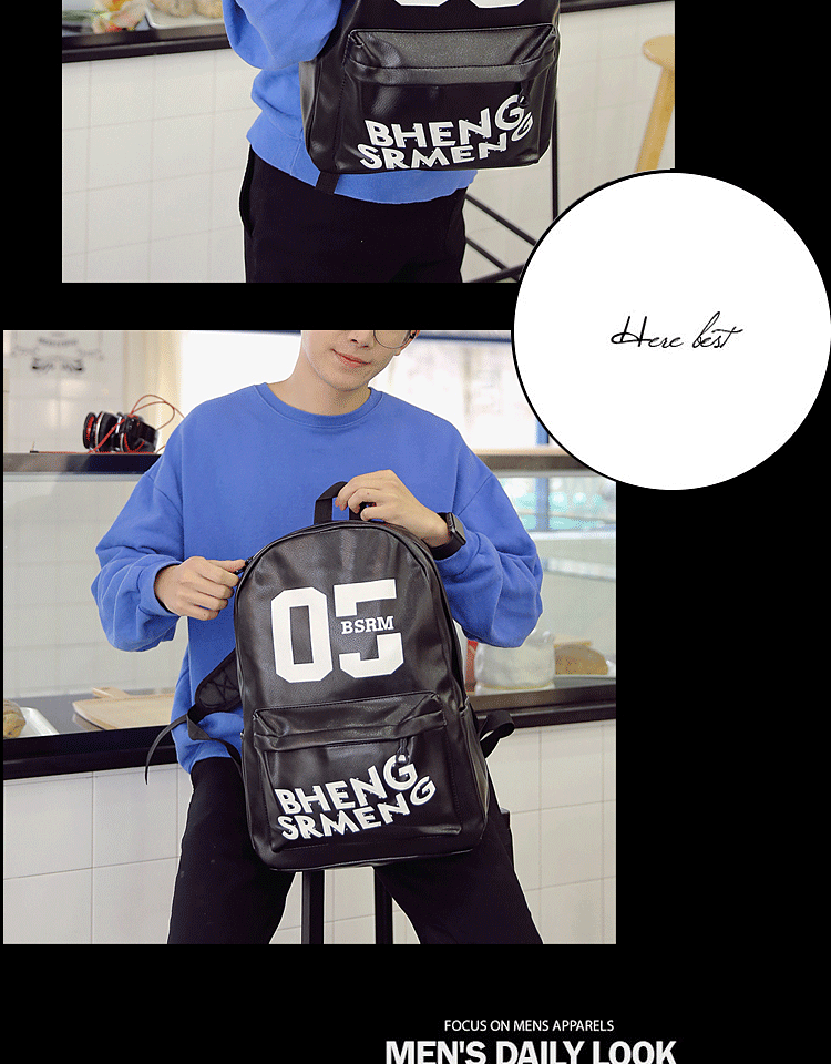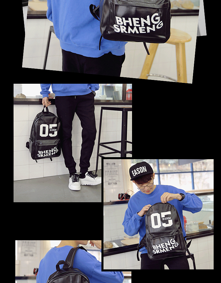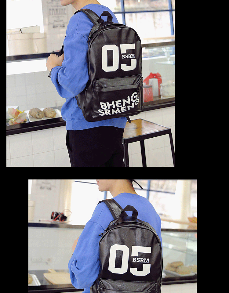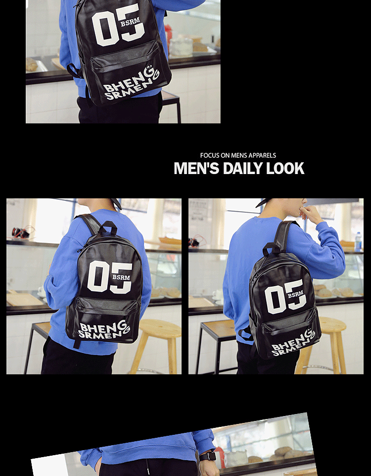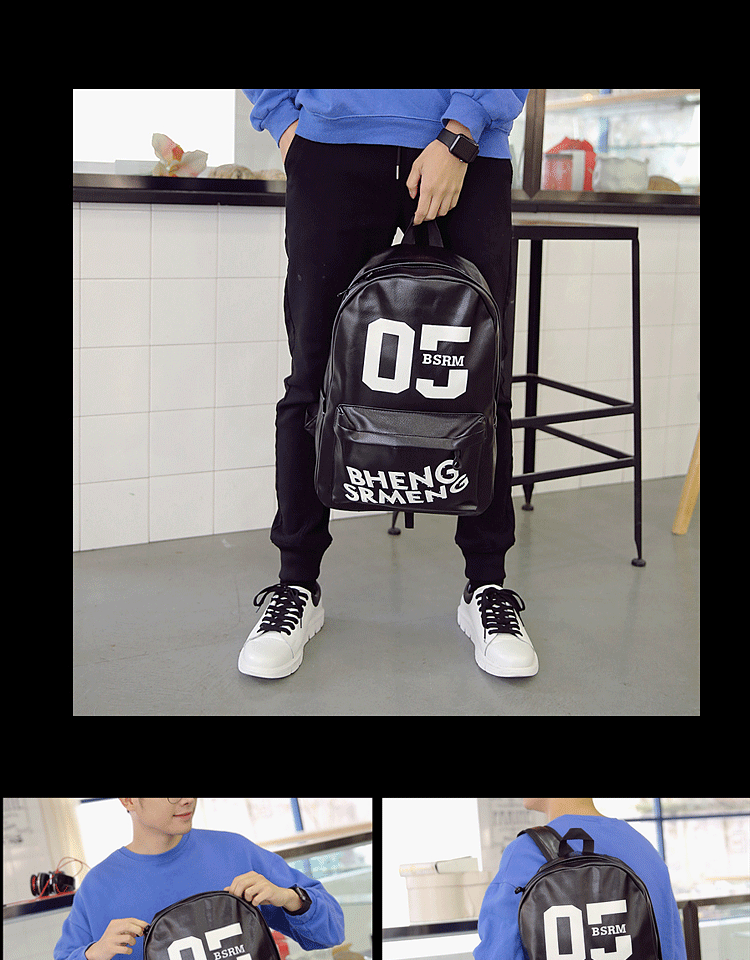 春季新款青少年学生书包男士双肩包PU皮休闲韩式背包男校园风