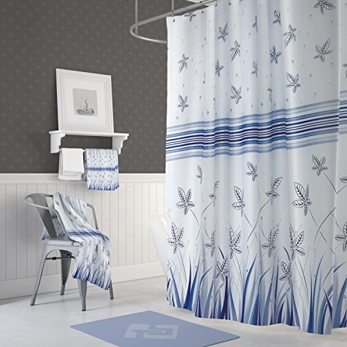 Striped Shower Curtain - Nature Flying Leaves Spring Bathroom Decor with Hooks - 72 x 78 Inches - Blue White
