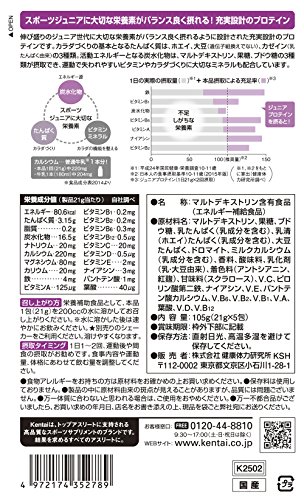 원본상품명: Kentai ジュニアプロテイン グレプ風味 105g (21g×5袋)