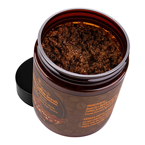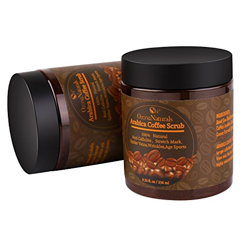 ctive Ingredients in this scrub:? ? Caffeine will stimulate blood flow and help reduce the appearance of cellulite, eczema, stretch marks, age spots, varicose veins and psoriasis.? ? Dead Sea Salt will exfoliate your skin, removing dead skin, acne, whiteheads, blackheads,breakouts and other skin blemishes.? ? Coconut Oil will hydrate and moisturize your skin.? ? Shea Butter, Cocoa Butter are high in antioxidants which nourish and protect the skin, promoting cell repair and rejuvenation.?