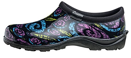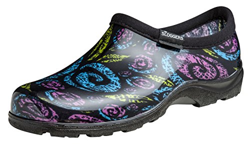 Studio : Sloggers Publisher : Sloggers Binding : Lawn Patio Product Description Step into the spring with our Sloggers - made in the USA - rain garden shoes in new floral Prints. Whether you're working in the garden, running errands around town on a rainy day, or just out walking the dog in the morning dew, you'll feel comfortable secure in these fun, waterproof shoes. They included our exclusive "All-Day-Comfort-Insoles", the main reason why Sloggers boots shoes receive such high comfort praise, our signature "Deep-Lug-Tread" for excellent traction in water mud. We use a Soft, flexible upper material made from odorless, medical grade, 100% recyclable plastic, our soles contain up to 50% recycled material Sizing info: half sizes order up, for a "perfect fit", order our Half-Size Cut-To-Fit Insole (style 330BK) to make any Sloggers boot or shoe 1/2 size smaller. Proudly made in the USA from 100% recyclable material, when they are all worn out, return them to us we'll make them into another shoe! how is that for "reuse recycle". for more information on our recycling program, please visit our website. 0
